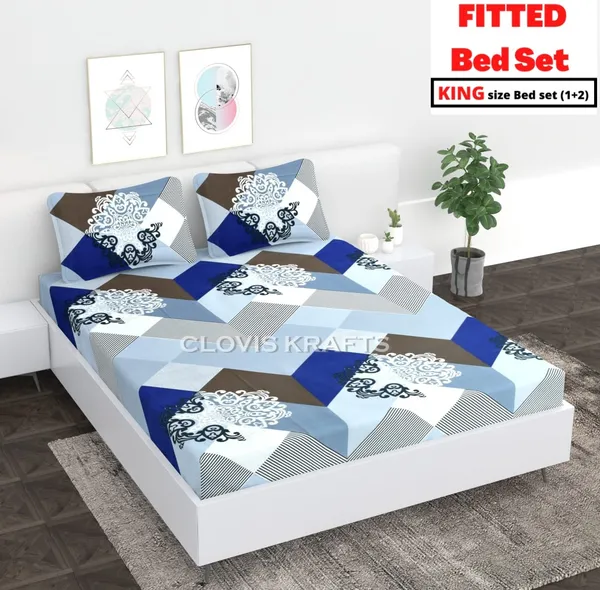 Premium King Size Fitted Elastic Bedsheet With Two Pillow Covers (72X78X U..More